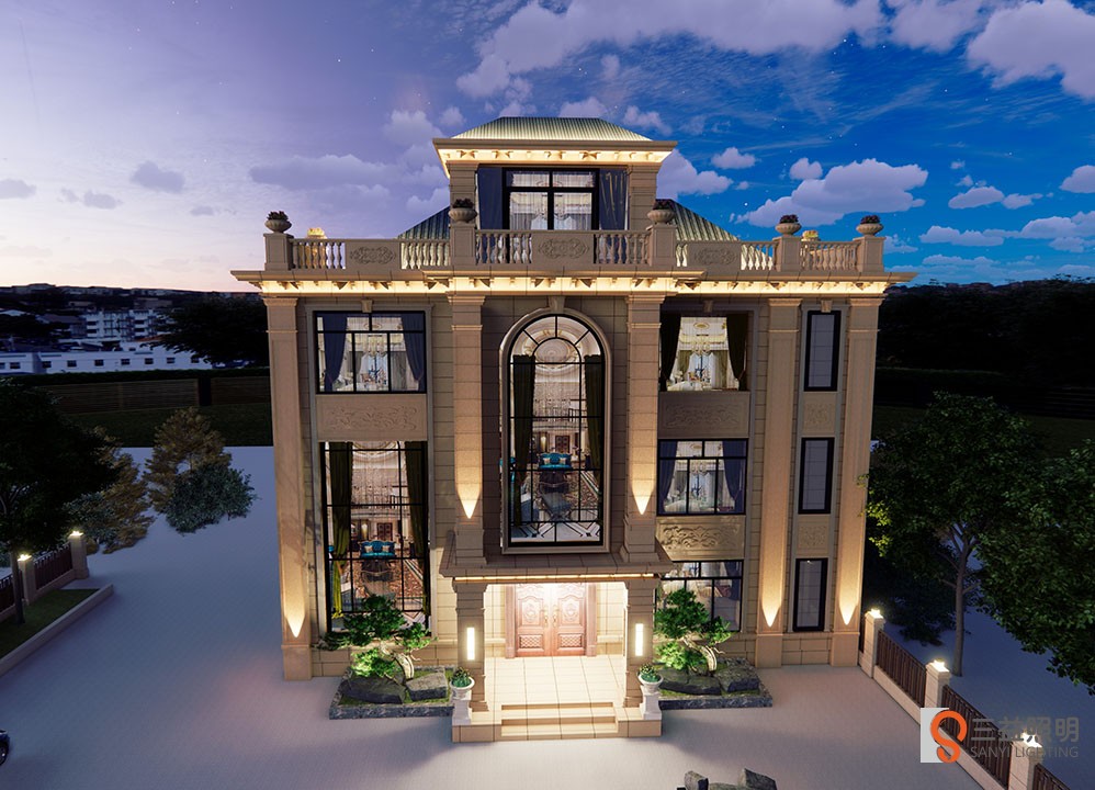 別墅燈光采用3D漫游設(shè)計(jì),燈具采用專(zhuān)業(yè)工程款瓦楞燈、洗墻燈、LED投光燈、定制柱頭燈、壁燈、草坪燈等,整體燈光營(yíng)造浪漫、溫馨的環(huán)境。
